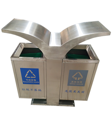 產品材質:不銹鋼戶外社區分類垃圾桶采用201#,202#,304#優質不銹鋼材料模壓成型,堅固耐用;內外表面光潔,減少垃圾殘留,易于清潔;配置鍍鋅板內桶,便于垃圾清倒;