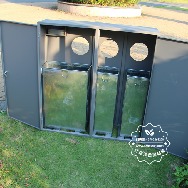 產(chǎn)品材質(zhì):出口酒店三分類鋼板垃圾桶表面經(jīng)過(guò)除油、噴砂防銹處理后,再進(jìn)行酸洗磷化處理;表面清理后整體進(jìn)行靜電噴涂或烤漆處理,靜電噴涂是經(jīng)過(guò)流水線高溫固化爐固化后再出爐冷卻,漆面色澤耐久,防腐防銹;