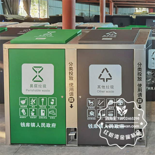 產(chǎn)品材質(zhì):戶外大號腳踏式不銹鋼分類垃圾箱采用201#,202#,304#優(yōu)質(zhì)不銹鋼材料模壓成型,堅固耐用;內(nèi)外表面光潔,減少垃圾殘留,易于清潔;配置鍍鋅板內(nèi)桶,便于垃圾清倒;