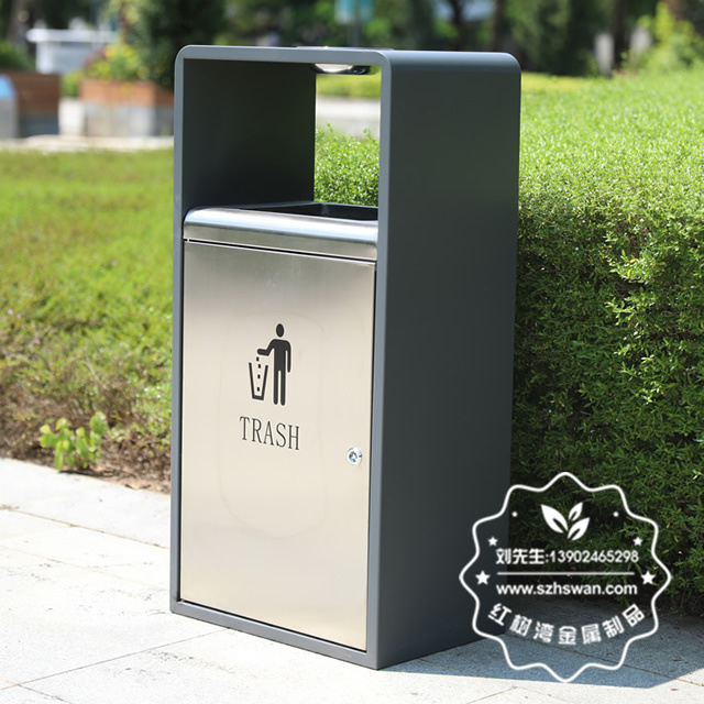 產品材質:貿易戶外單筒方形不銹鋼果殼箱采用201#,202#,304#優質不銹鋼材料模壓成型,堅固耐用;內外表面光潔,減少垃圾殘留,易于清潔;配置鍍鋅板內桶,便于垃圾清倒;