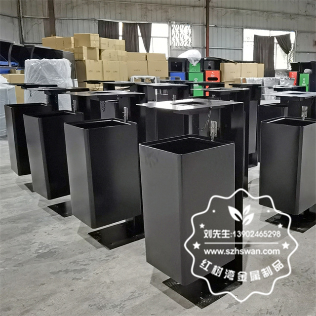 產品材質:戶外噴塑黑色不銹鋼垃圾桶單筒采用201#,202#,304#優質不銹鋼材料模壓成型,堅固耐用;內外表面光潔,減少垃圾殘留,易于清潔;配置鍍鋅板內桶,便于垃圾清倒;