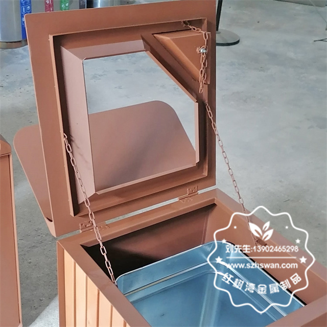 產品材質:出口外貿戶外方形不銹鋼分類垃圾桶采用201#,202#,304#優質不銹鋼材料模壓成型,堅固耐用;內外表面光潔,減少垃圾殘留,易于清潔;配置鍍鋅板內桶,便于垃圾清倒;