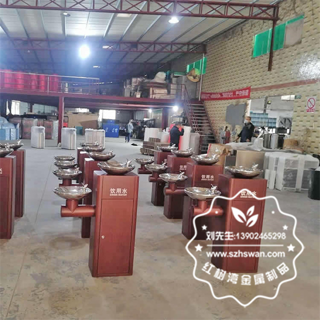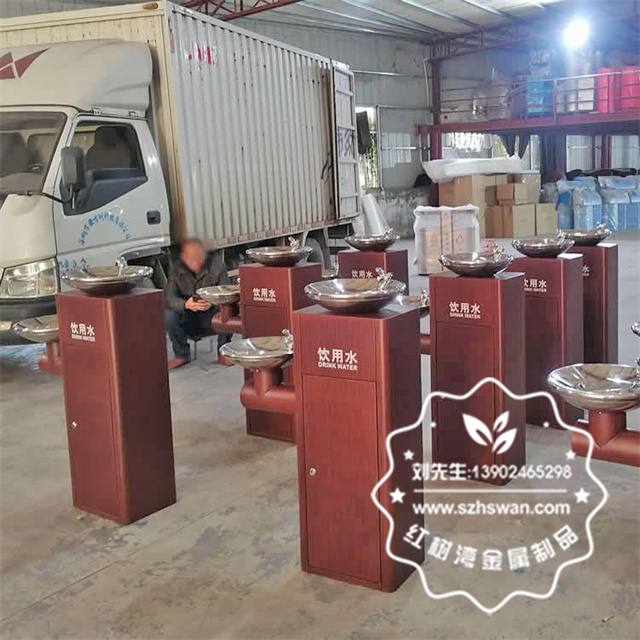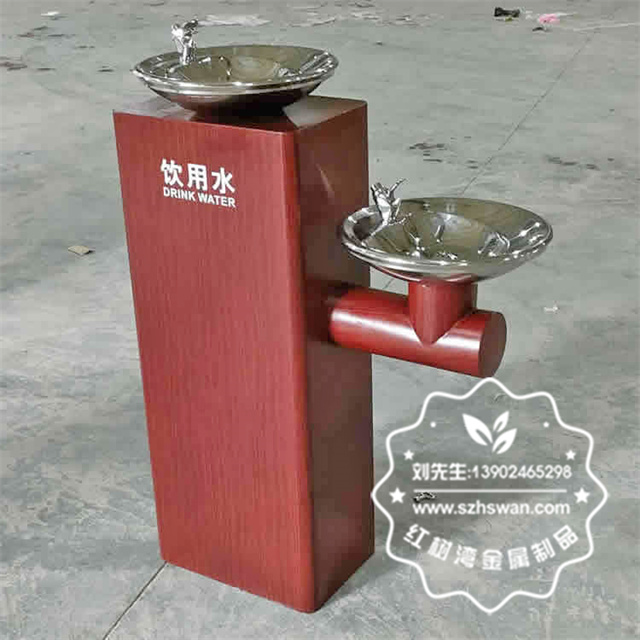 戶外景區公共轉木紋胡桃色不銹鋼飲水機采用優質304不銹鋼無縫焊接成型,投口模具沖壓成型,邊角精細打磨拋光圓滑不割手,高檔大氣。
