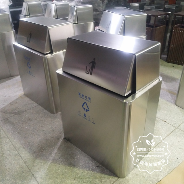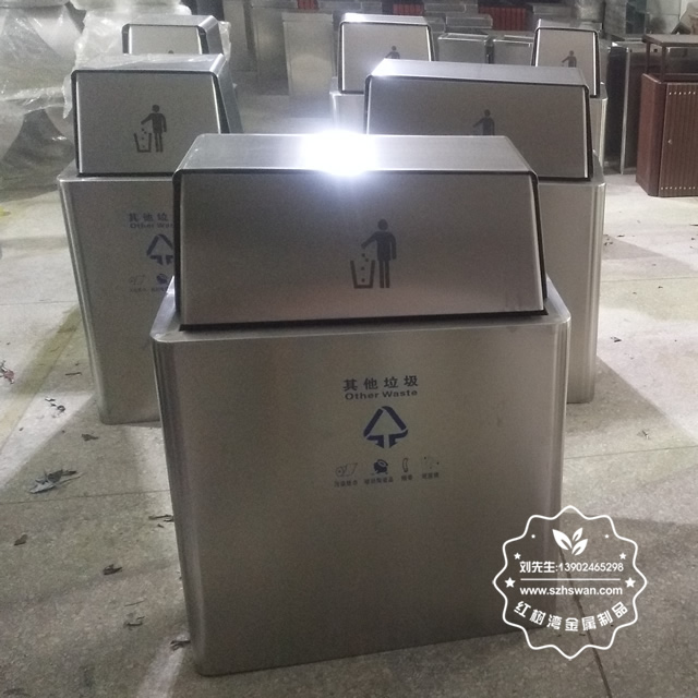 產品材質:大型方形單筒不銹鋼垃圾桶采用201#,202#,304#優質不銹鋼材料模壓成型,堅固耐用;內外表面光潔,減少垃圾殘留,易于清潔;配置鍍鋅板內桶,便于垃圾清倒;