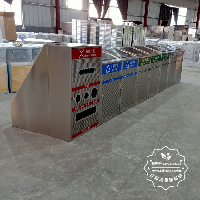產品材質:戶外大型沖孔不銹鋼分類垃圾桶采用201#,202#,304#優質不銹鋼材料模壓成型,堅固耐用;內外表面光潔,減少垃圾殘留,易于清潔;配置鍍鋅板內桶,便于垃圾清倒;