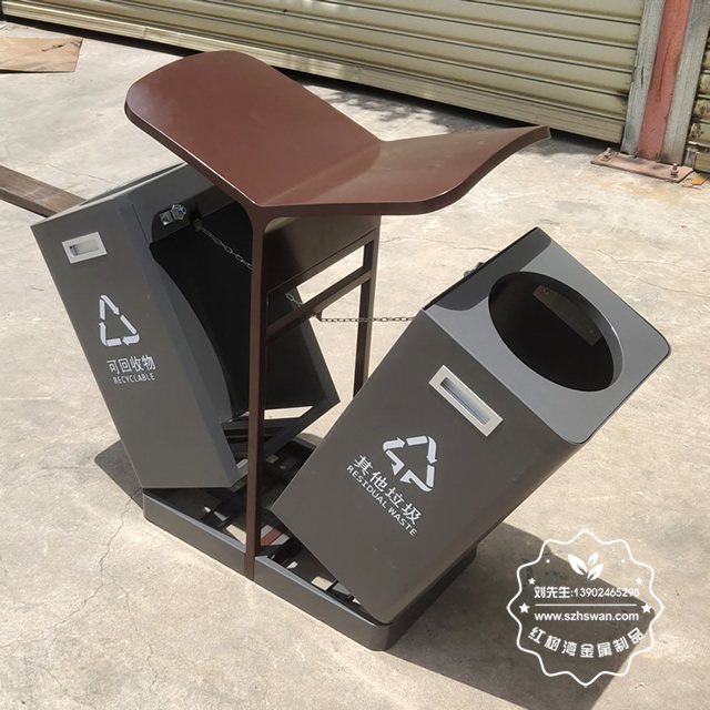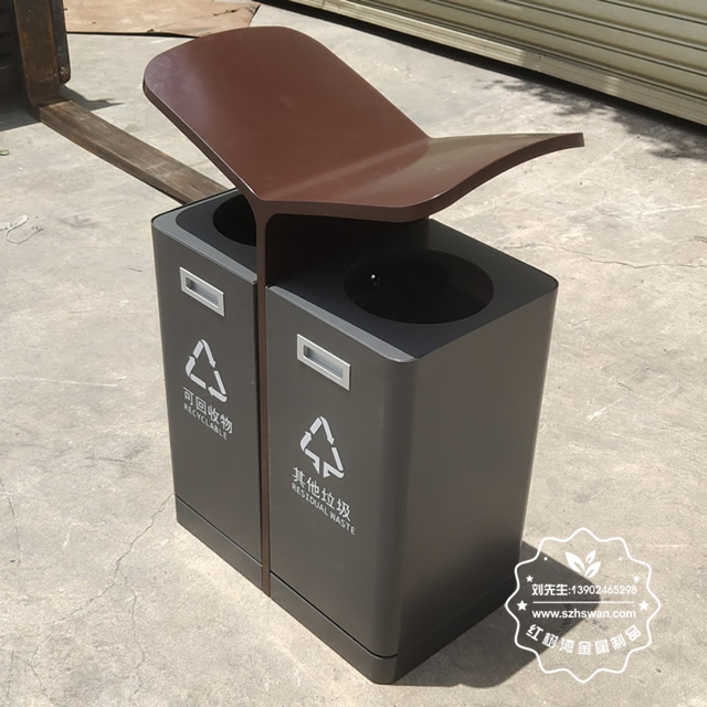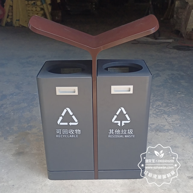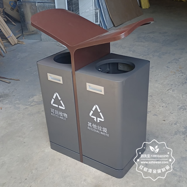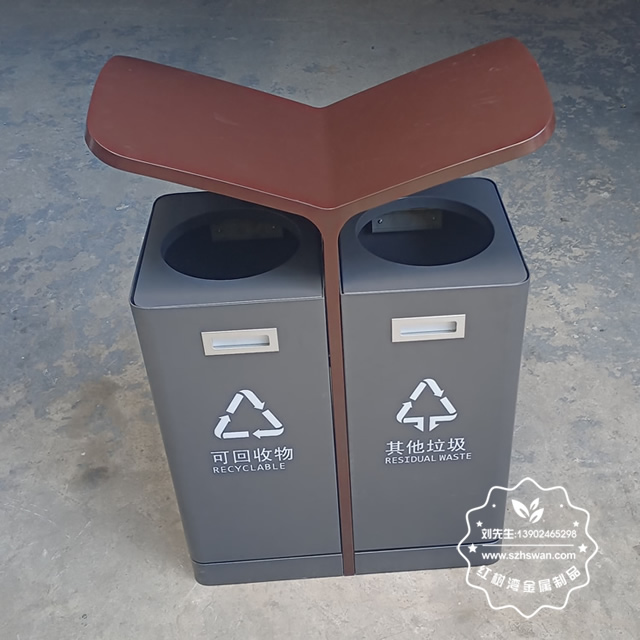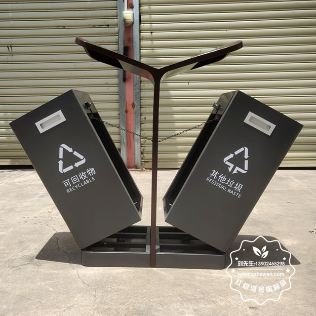 產品材質:戶外翼形噴塑不銹鋼分類垃圾箱采用201#,202#,304#優質不銹鋼材料模壓成型,堅固耐用;內外表面光潔,減少垃圾殘留,易于清潔;配置鍍鋅板內桶,便于垃圾清倒;