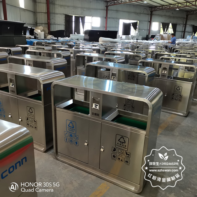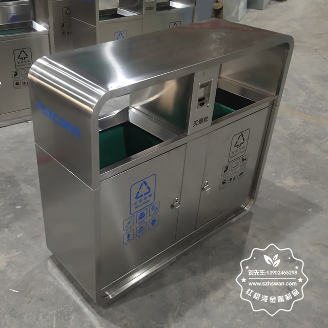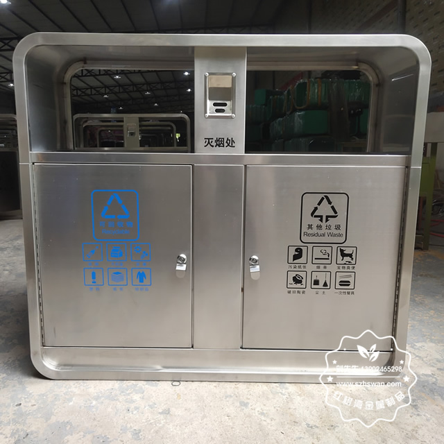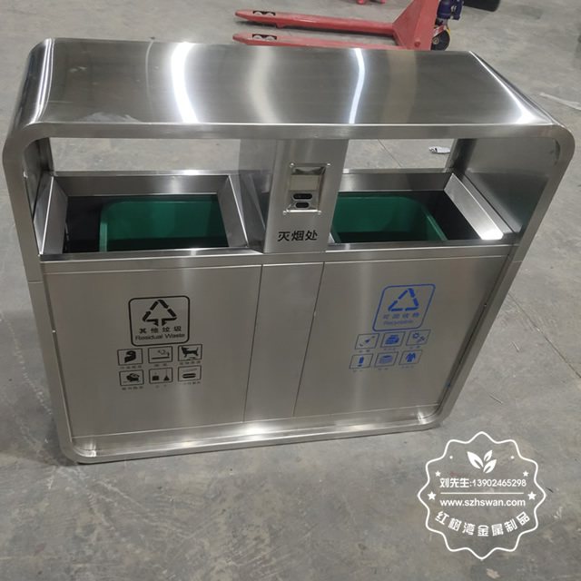 產品材質:戶外街道不銹鋼兩分類垃圾箱采用201#,202#,304#優質不銹鋼材料模壓成型,堅固耐用;內外表面光潔,減少垃圾殘留,易于清潔;配置鍍鋅板內桶,便于垃圾清倒;
