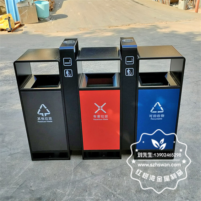 產品材質:戶外小區3色連體不銹鋼分類垃圾桶采用201#,202#,304#優質不銹鋼材料模壓成型,堅固耐用;內外表面光潔,減少垃圾殘留,易于清潔;配置鍍鋅板內桶,便于垃圾清倒;
