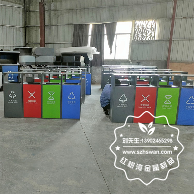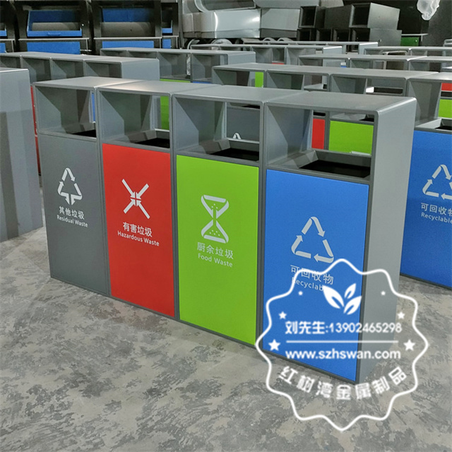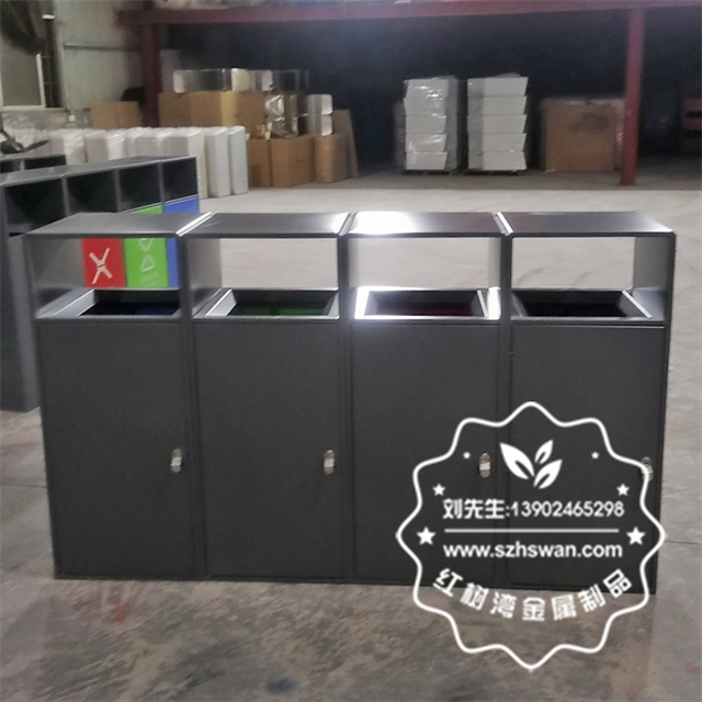 產品材質:戶外小區環衛四色分類不銹鋼垃圾桶采用201#,202#,304#優質不銹鋼材料模壓成型,堅固耐用;內外表面光潔,減少垃圾殘留,易于清潔;配置鍍鋅板內桶,便于垃圾清倒;