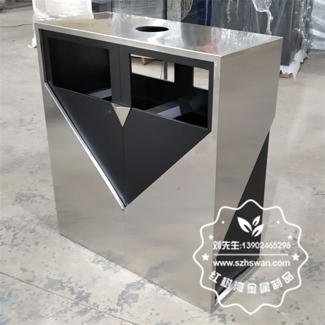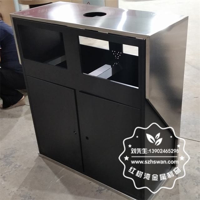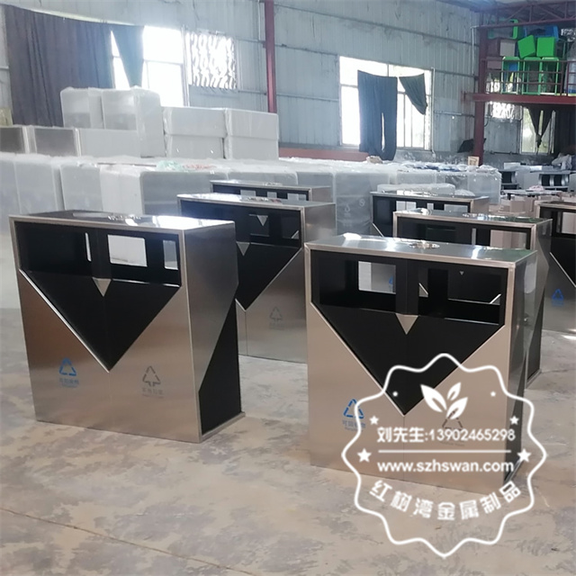 產品材質:戶外小區噴塑雙層不銹鋼分類垃圾桶采用201#,202#,304#優質不銹鋼材料模壓成型,堅固耐用;內外表面光潔,減少垃圾殘留,易于清潔;配置鍍鋅板內桶,便于垃圾清倒;