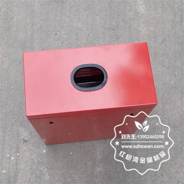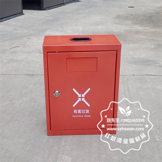 產品材質:戶外方形掛壁式紅色烤漆不銹鋼有害垃圾桶采用201#,202#,304#優質不銹鋼材料模壓成型,堅固耐用;內外表面光潔,減少垃圾殘留,易于清潔;配置鍍鋅板內桶,便于垃圾清倒;