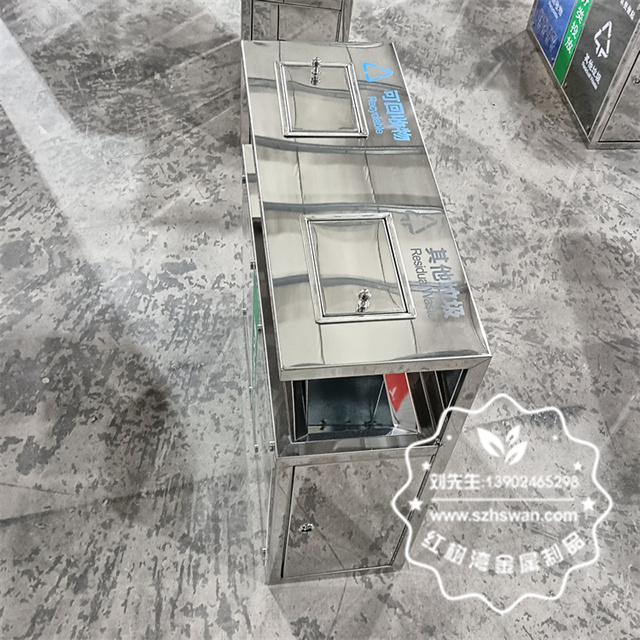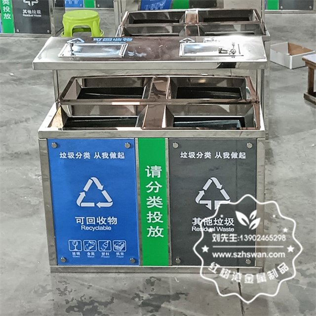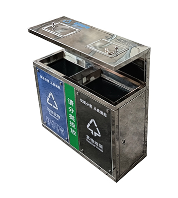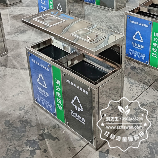 產(chǎn)品材質(zhì):戶外市政街道鏡面拋光不銹鋼分類垃圾桶采用201#,202#,304#優(yōu)質(zhì)不銹鋼材料模壓成型,堅固耐用;內(nèi)外表面光潔,減少垃圾殘留,易于清潔;配置鍍鋅板內(nèi)桶,便于垃圾清倒;