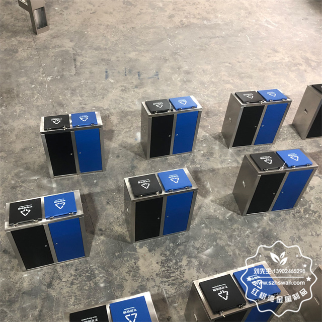 戶外腳踏式兩連體不銹鋼分類垃圾桶采用優質201不銹鋼無縫焊接成型,投口模具沖壓成型,邊角精細打磨拋光圓滑不割手,高檔大氣。