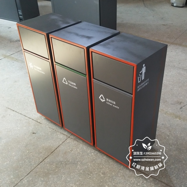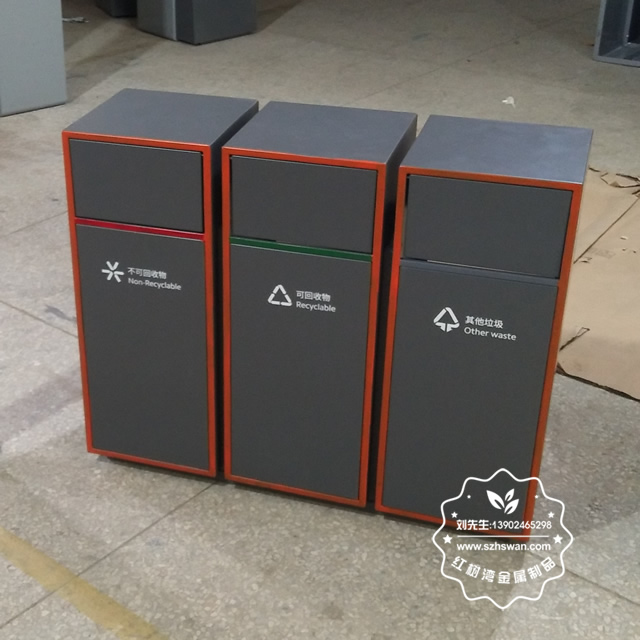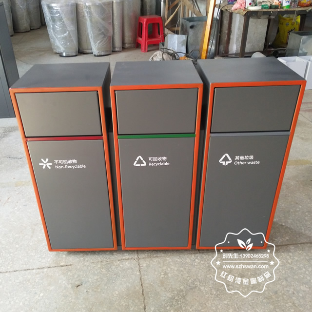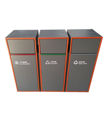 產(chǎn)品材質(zhì):戶外三分類組合式不銹鋼垃圾箱采用201#,202#,304#優(yōu)質(zhì)不銹鋼材料模壓成型,堅固耐用;內(nèi)外表面光潔,減少垃圾殘留,易于清潔;配置鍍鋅板內(nèi)桶,便于垃圾清倒;