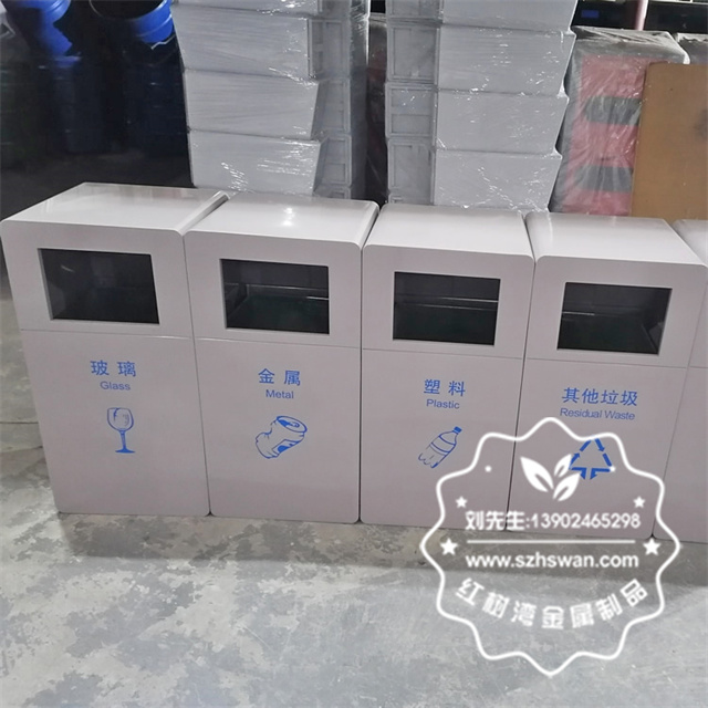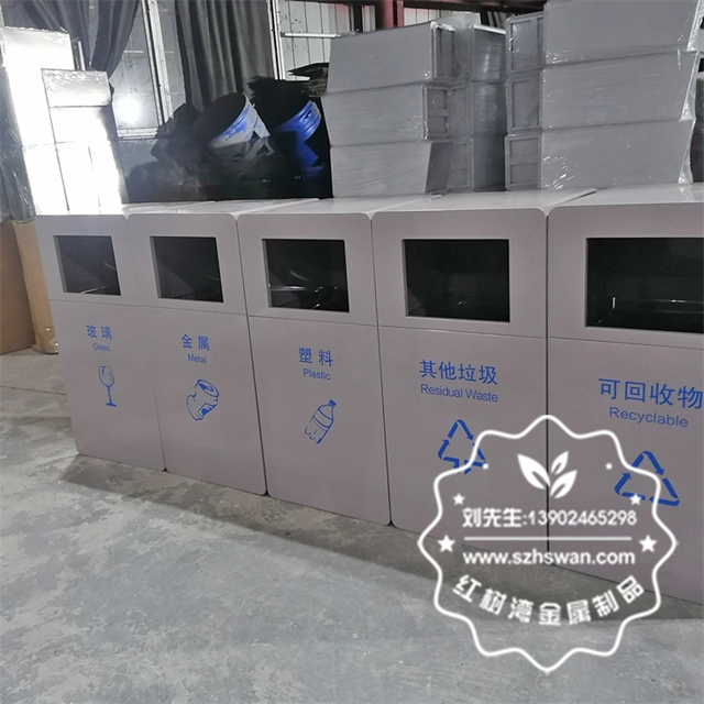 產(chǎn)品材質(zhì):戶外公園烤漆鍍鋅板分類(lèi)垃圾桶采用優(yōu)質(zhì)冷軋鋼經(jīng)除油-除銹-表調(diào)-磷化處理后,表面采用汽車(chē)靜電粉末經(jīng)過(guò)180~220℃高溫烤漆,使粉末熔化黏附在金屬表面,雙層防銹,漆面色澤耐久;