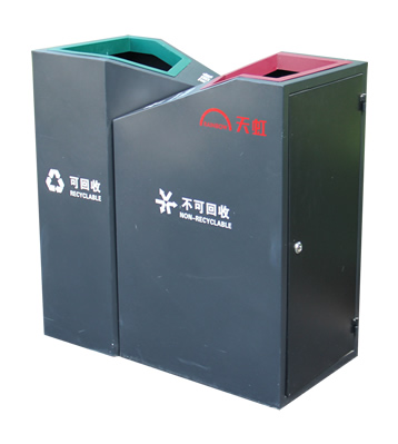 產品材質:商場直投口雙分類鋼制垃圾桶表面經過除油、噴砂防銹處理后,再進行酸洗磷化處理;表面清理后整體進行靜電噴涂或烤漆處理,靜電噴涂是經過流水線高溫固化爐固化后再出爐冷卻,漆面色澤耐久,防腐防銹;