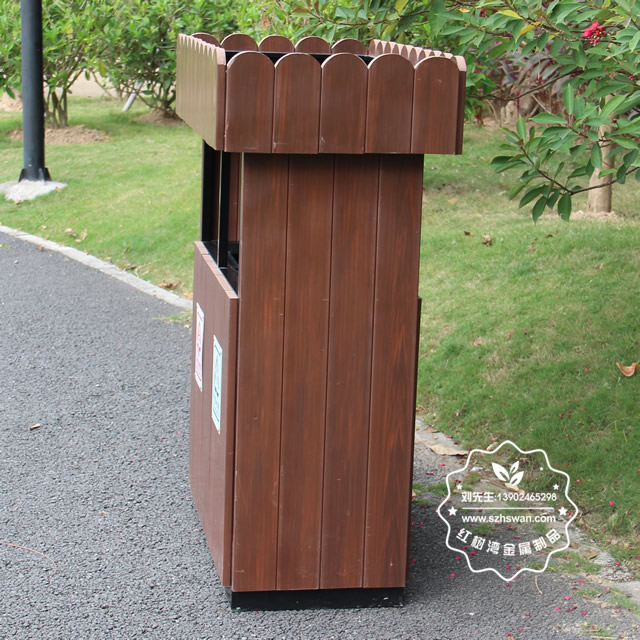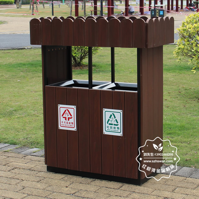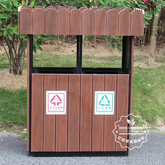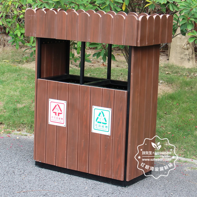 產品型號:G138環保塑木花箱鋼木分類垃圾桶