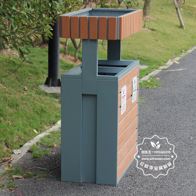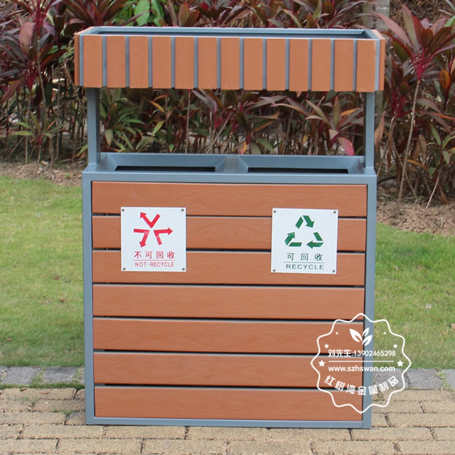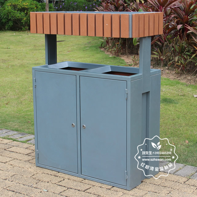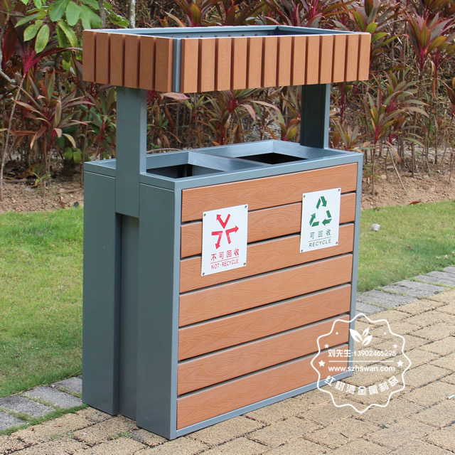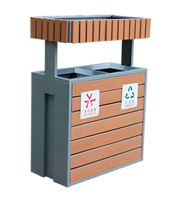 產品型號:JP19-2公園綠化花箱鋼木分類垃圾桶