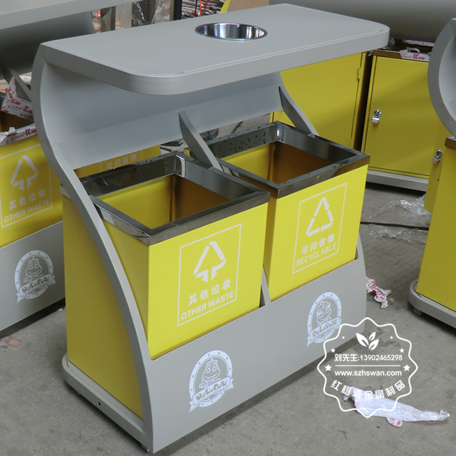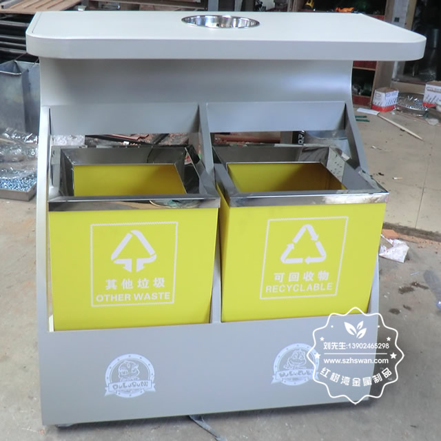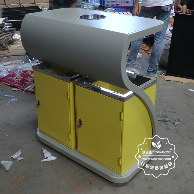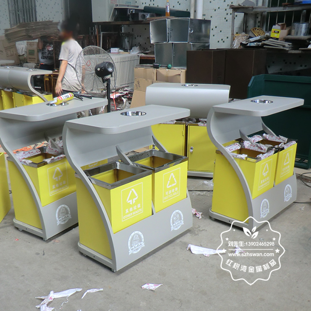產(chǎn)品材質(zhì):環(huán)保鋼制垃圾桶表面經(jīng)過除油、噴砂防銹處理后,再進行酸洗磷化處理;表面清理后整體進行靜電噴涂或烤漆處理,靜電噴涂是經(jīng)過流水線高溫固化爐固化后再出爐冷卻,漆面色澤耐久,防腐防銹;