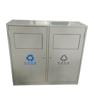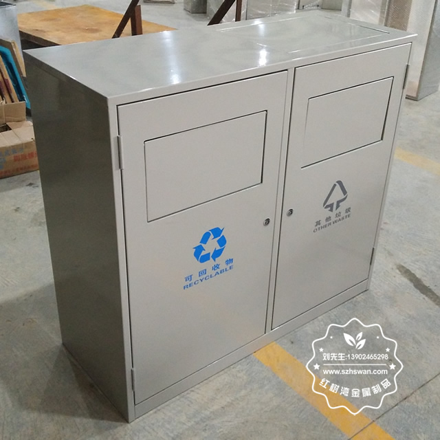 產品材質:搖蓋式分類冷軋鋼垃圾桶表面經過除油、噴砂防銹處理后,再進行酸洗磷化處理;表面清理后整體進行靜電噴涂或烤漆處理,靜電噴涂是經過流水線高溫固化爐固化后再出爐冷卻,漆面色澤耐久,防腐防銹;