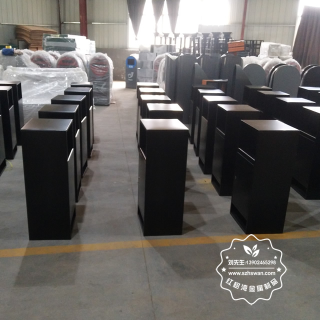 產品材質:室外方形噴塑冷鋼板果皮箱表面經過除油、噴砂防銹處理后,再進行酸洗磷化處理;表面清理后整體進行靜電噴涂或烤漆處理,靜電噴涂是經過流水線高溫固化爐固化后再出爐冷卻,漆面色澤耐久,防腐防銹;
