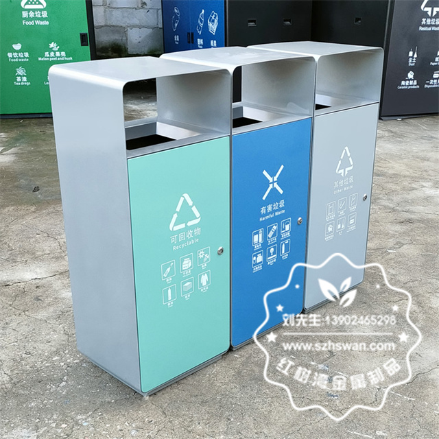 不銹鋼垃圾箱大多數是指以不銹鋼為主要原材料,經過一系列的鈑金加工制作而成專門用來收集垃圾的物品。不銹鋼垃圾箱比傳統意義上的不銹鋼垃圾桶要大一些,通過都會有分類功能。承載垃圾的地方會分成三個甚至更多的獨立空間,方便收集各種不同的垃圾,進行針對性的處理。不銹鋼垃圾箱的制作主要以耐腐蝕性、質量、外觀三個基本要求為主。因為大多數在室外的惡劣環境使用,所以制作的選材和加工的質量都非常重要,否則使用壽命會非常低。