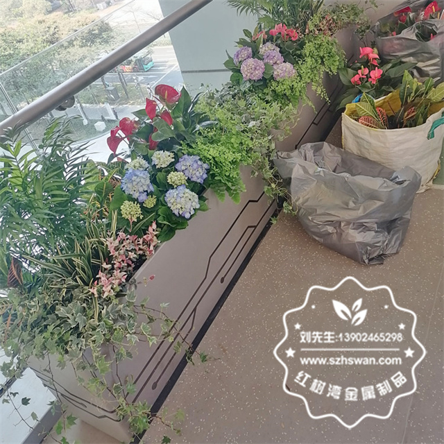 除了外觀的定制,我們還注重花盆的功能性和實用性。我們的不銹鋼花盆可以根據客戶的要求進行加工,如開孔、排水裝置、防滑墊等,以滿足不同植物的生長需求和客戶的使用習慣。此外,不銹鋼材質的花盆易于清潔和維護,可以輕松地保持其美觀和衛生。  我們的長方形不銹鋼花盆不僅適用于個人家庭使用,也可以用于公共場所和商業環境。其耐用性和美觀性使得它成為戶外景觀設計和室內裝飾的理想選擇。我們可以根據場所的特點和風格來定制不同款式的花盆,以達到更好的視覺效果和整體協調性。
