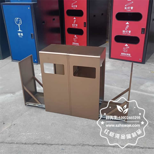 小區噴塑金屬兩連體垃圾桶定制創新設計與實用價值