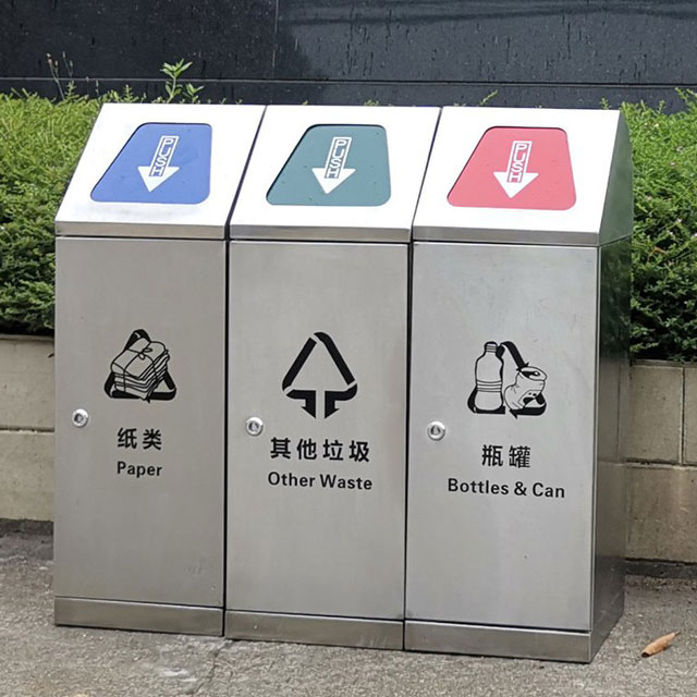 探秘密閉式三分類連體不銹鋼垃圾桶