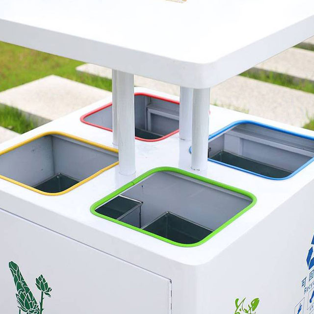 公園作為人員密集的休閑場所,垃圾種類繁多。這款垃圾桶精準劃分為可回收物、有害垃圾、廚余垃圾和其他垃圾四類。可回收物區域鼓勵游客將飲料瓶、紙張等有回收價值的物品進行分類投放,實現資源的再利用;有害垃圾區域則妥善收納廢舊電池、過期藥品等,避免對土壤和水源造成污染;廚余垃圾區域收集游客野餐產生的食物殘渣等;其他垃圾區域收納難以歸類的廢棄物。這樣細致的分類,符合現代環保理念,能最大程度地提高垃圾處理效率,減少對環境的負面影響。堅固不銹鋼,抵御公園環境挑戰