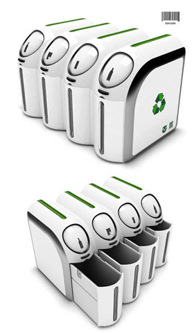? 全球創(chuàng)意垃圾桶設(shè)計二:條碼垃圾桶,眾所周知,垃圾是要分類回收的。每天為了思考自己的垃圾到底應該扔進哪個垃圾桶,不免繁瑣。有了這款垃圾桶,您就不用愁了。這款由Woo Seok Park設(shè)計的垃圾桶只需將外包裝上的回收條碼掃描一下就可以提示您的垃圾到底應該丟進哪個桶里。
