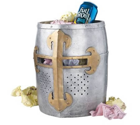 ? 全球創(chuàng)意垃圾桶設(shè)計四:哥特式垃圾桶,設(shè)計靈感來源于中世紀武士的頭盔,十分具有哥特式的風格。樹脂和人造金屬的原料使其一點都不顯笨重。