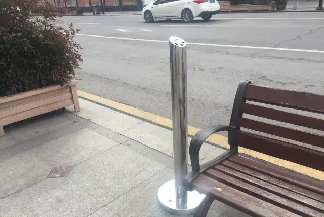 我們在工作當中發現馬路上有很多煙頭,都是市民亂扔的,增加了我們工人很大的工作量,扔在馬路中間影響了安全。所以我們在景觀道、商業道上先安裝了一批扔煙頭的煙柱,一是減少了工作量,第二是美化了環境。接下來看效果,效果好的話我們要推廣,跟城市景觀協調一下,在不影響交通的情況下盡量安裝一些。