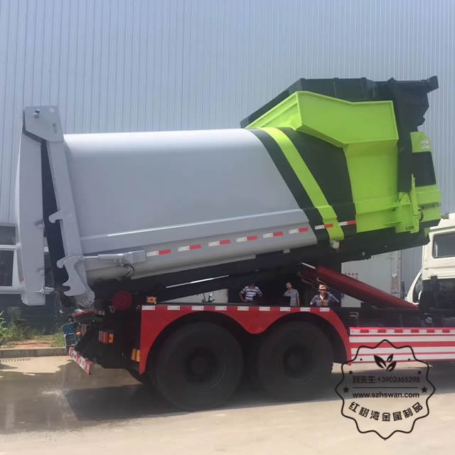 連體壓縮垃圾箱是用于廢物搜集、轉運(經過車廂可卸式廢物車)的環衛設備。配備有緊縮機頭、車箱、液壓傳動體系和電氣控制體系。廢物經過翻轉組織從填料口倒入, 經緊縮推頭壓入車廂內,壓入時經過特別結構破碎廢物。緊縮推頭經過兩支油缸驅動,體系壓力可調到較大值,因而裝載容量比一般環衛設備大。裝卸廢物時既不污染環境,又減輕了清潔工人的勞動強度。本說明書只介紹連體壓縮垃圾箱的首要技術參數、原理、操作方法、保養和毛病掃除。