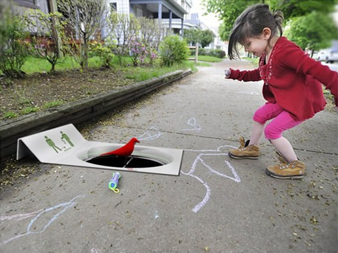 我們當前生活環境的公共衛生問題是非常嚴峻的,經常會看到小區或者街角的垃圾桶里的垃圾因為太滿而溢出來,再不然就是人為的沒有放好垃圾,垃圾桶臟的感覺讓人難以接近。這款由Tsewang Genspa&Mun Kim設計的金屬的不銹鋼地埋式垃圾桶,首先,它的隱蔽性讓人不容易看見凌亂的垃圾,其次,如果在附近地面的垃圾可以用腳踢進垃圾箱內,再次,避免溢滿或者遠距離投垃圾。  地埋式垃圾箱是不銹鋼材質的,在垃圾箱的箱口處中央橫放一根不銹鋼棍,棍子上方有只小鳥,是用來指示人們“這里有垃圾桶”,避免小孩或大人墜落。這款有趣的設計可以讓人將不遠處的垃圾踢進箱子里,還間接地鍛煉身體了呢,亦或者,心情不好時當做發泄不良情緒的方法。