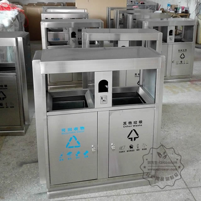 分類回收垃圾箱就是室內戶外容納承載垃圾廢物的容器,一個外行人叫的一個容器有的叫垃圾桶、垃圾箱或者果皮箱,廠家告訴你四四方方長寬不依我們叫垃圾箱,高挑的身材奇形怪狀的容器我們垃圾桶,擺放室內四方形的容器我們叫果皮箱,一個長方形的垃圾容納箱帶兩個內筒可以回收垃圾的我們專業人士叫分類垃圾箱,我們介紹過垃圾箱有很多種材質每一種材質都可以制造出不同的垃圾箱垃圾桶果皮箱,小編今天主要說的是分類回收垃圾箱我們這邊有很多分類垃圾回收箱作品可以分享給大家欣賞。