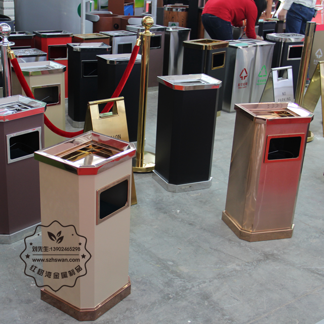 電梯口垃圾桶就是裝放垃圾的箱子,也叫垃圾箱、果皮箱、煙灰桶。本廠提供:不銹鋼垃圾桶(垃圾箱),不銹鋼煙灰桶、不銹鋼果皮箱(果皮桶),酒店大堂垃圾桶,賓館煙灰桶,樓梯口果皮箱,戶外垃圾桶,戶外分類環(huán)保果皮箱,電梯口垃圾桶,高檔垃圾桶(果皮箱、煙灰桶),鈦金垃圾桶/煙灰桶/果皮箱等。垃圾桶就使用場合可分為公共垃圾桶和家庭垃圾桶。就盛放垃圾形式可分為獨立垃圾桶和分類垃圾桶。就加工材料可分為塑料垃圾桶、不銹鋼垃圾桶、陶瓷垃圾桶、木質垃圾桶、水泥垃圾桶和紙漿垃圾桶等等。就開啟方式有敞口式、揭蓋式、踩踏開蓋、感應式(紅外線)等。垃圾桶是社會文化的一種折射。