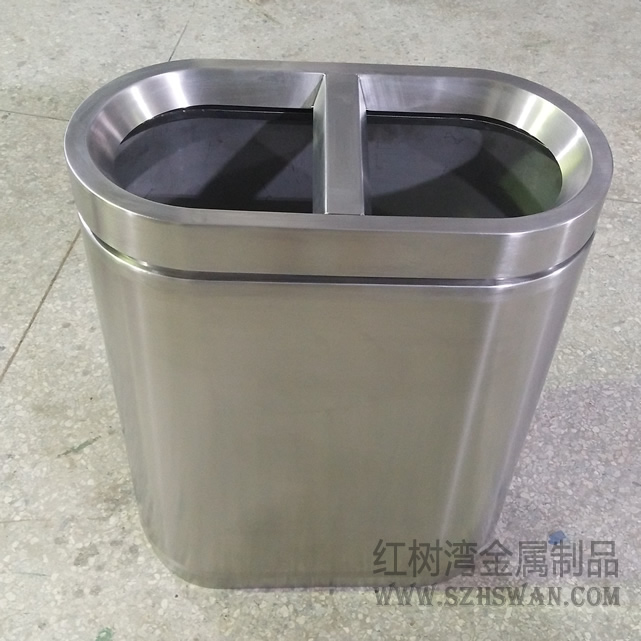 這款室內分類不銹鋼垃圾桶采用了304不銹鋼板材材質,通過折彎機折成了一個圓弧形,使用進口焊接機焊接經過了打磨垃圾桶表面無焊接印,絲印了可回收垃圾和其他垃圾;這款垃圾桶適合擺放在商場、酒店、小區、地鐵地下室等室內場景桶整體感覺整潔大口徑廢物投口,方便廣州白云萬達廣場的顧客處理進行廢物回收。