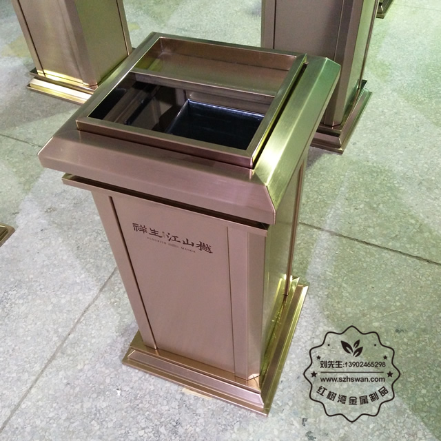 江蘇泰州泰興祥生江山樾是一個高檔的小區,近日祥生江山樾物業采購人員在互聯網上尋找定做室內不銹鋼垃圾桶的生產廠家,在百度上尋找到我們紅樹灣的官網看的我公司的垃圾桶產品實圖生產很美觀而大氣,撥通的我們官網的聯系方式,聯系我們企業的業務經理說需要定制一款室內高檔方形玫瑰金不銹鋼垃圾回收箱,客戶與我們紅樹灣的業務經理聊了一些有關垃圾桶這種工藝選材方便相關問題,客戶相信我們紅樹灣的技術精湛服務好,于是和我們企業達成了合作方案。  這款高檔方形玫瑰金室內不銹鋼垃圾回收箱采用的材質是201不銹鋼板1.0mm厚度制作,內筒鍍鋅板0.4mm厚度,外筒方形電鍍玫瑰金顏色,帶吸煙投口使用了絲印工藝印刷了祥生江山樾幾個logo名稱栩栩如生;垃圾桶也是近日生產好的從惠州發往江蘇泰州泰興祥生江山樾小區,倉管安排發貨走的是陸運物流裝了滿滿的一大卡車;客戶收到貨和我們業務經理說這款果皮箱做的不錯,不停的夸贊這款桶,擺放在小區里整個小區高檔了不少。  江山樾領導歡迎致辭并表示:十年耕耘,江蘇泰州泰興祥生伴隨著這座城市在不斷前行的同時,也在思考如何為泰興人民提供更宜居的產品。而祥生·江山樾,無論從前期選址和規劃方案,還是產品設計理念及配置標準,都提出了更高的要求。我們希望泰興祥生能為城市的發展做出更大的努力,為泰興人民提供更高品質的產品!
