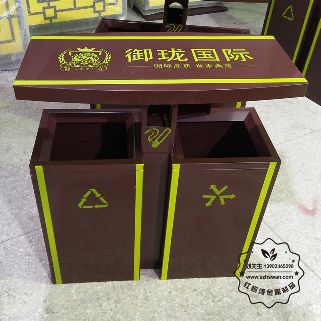這款烤漆戶外雙分類不銹鋼垃圾回收箱是近期御瓏國際采購人員在網(wǎng)上找到我們紅樹灣訂制的,桶身整體材質(zhì)使用了304不銹鋼板材制作的,桶身酒紅色和深黃色高溫烤漆絲印logo工藝;紅樹灣垃圾回收箱產(chǎn)品流水線生產(chǎn),使得有更多的時間進行產(chǎn)品改進,這又推動了更大規(guī)模市場的形成。