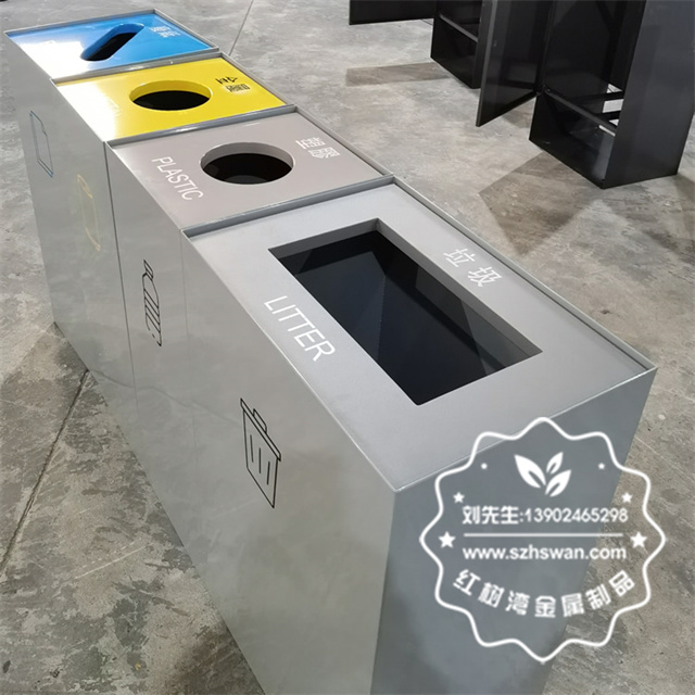 產(chǎn)品材質(zhì):室內(nèi)商用4分類不銹鋼垃圾桶采用201#,202#,304#優(yōu)質(zhì)不銹鋼材料模壓成型,堅(jiān)固耐用;內(nèi)外表面光潔,減少垃圾殘留,易于清潔;配置鍍鋅板內(nèi)桶,便于垃圾清倒;