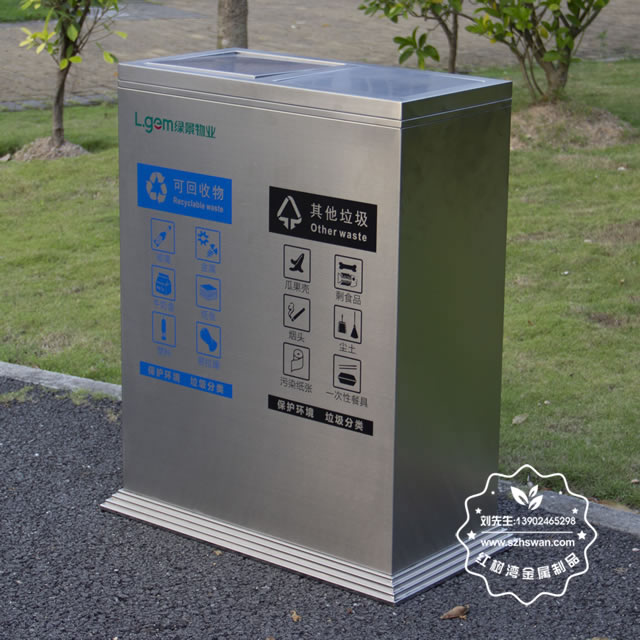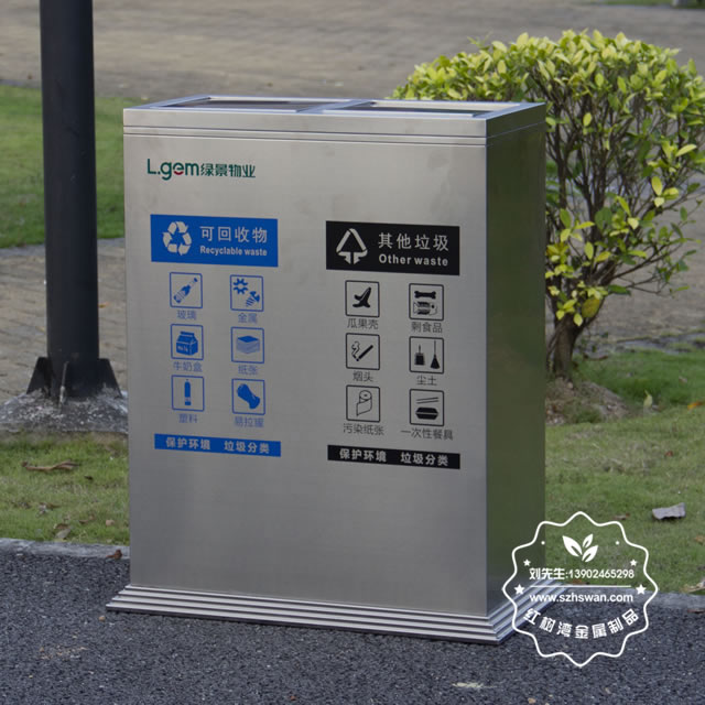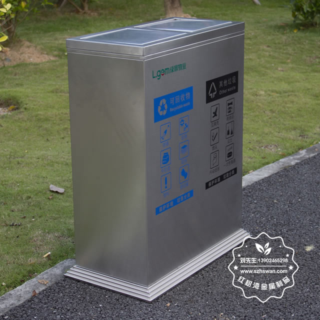產品材質:不銹鋼垃圾桶采用201#,202#,304#優質不銹鋼材料模壓成型,堅固耐用;內外表面光潔,減少垃圾殘留,易于清潔;配置鍍鋅板內桶,便于垃圾清倒;