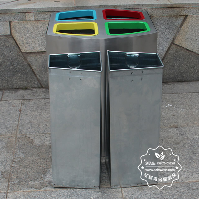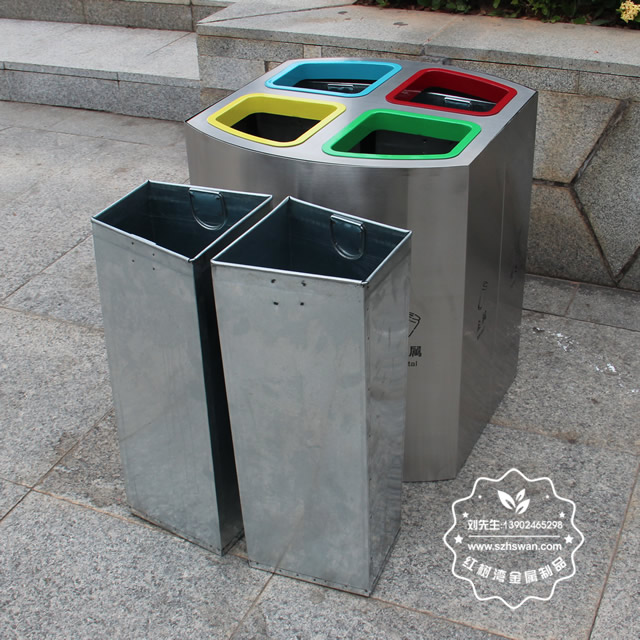 產品材質:不銹鋼垃圾桶采用201#,202#,304#優質不銹鋼材料模壓成型,堅固耐用;內外表面光潔,減少垃圾殘留,易于清潔;配置鍍鋅板內桶,便于垃圾清倒;