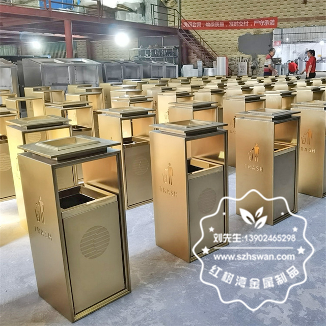 產品材質:室內方形電梯口電鍍不銹鋼垃圾桶采用201#,202#,304#優質不銹鋼材料模壓成型,堅固耐用;內外表面光潔,減少垃圾殘留,易于清潔;配置鍍鋅板內桶,便于垃圾清倒;