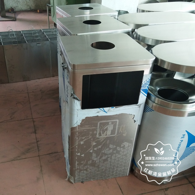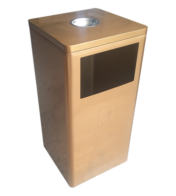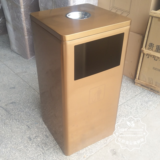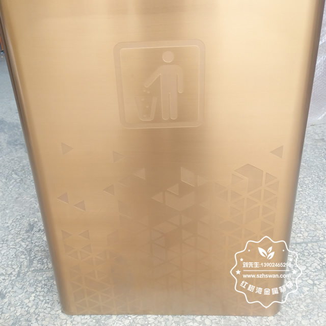產品材質:腐刻電鍍土豪金不銹鋼垃圾桶采用201#,202#,304#優質不銹鋼材料模壓成型,堅固耐用;內外表面光潔,減少垃圾殘留,易于清潔;配置鍍鋅板內桶,便于垃圾清倒;