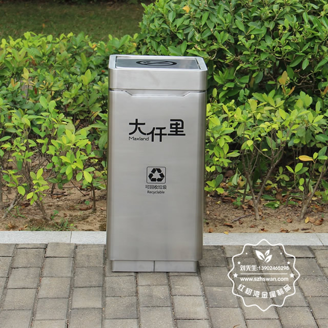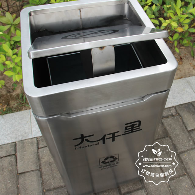 產品材質:室內方形搖擺蓋不銹鋼分類垃圾桶采用201#,202#,304#優質不銹鋼材料模壓成型,堅固耐用;內外表面光潔,減少垃圾殘留,易于清潔;配置鍍鋅板內桶,便于垃圾清倒;