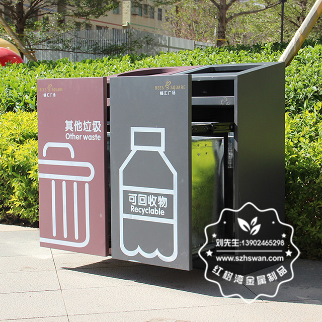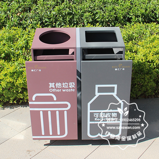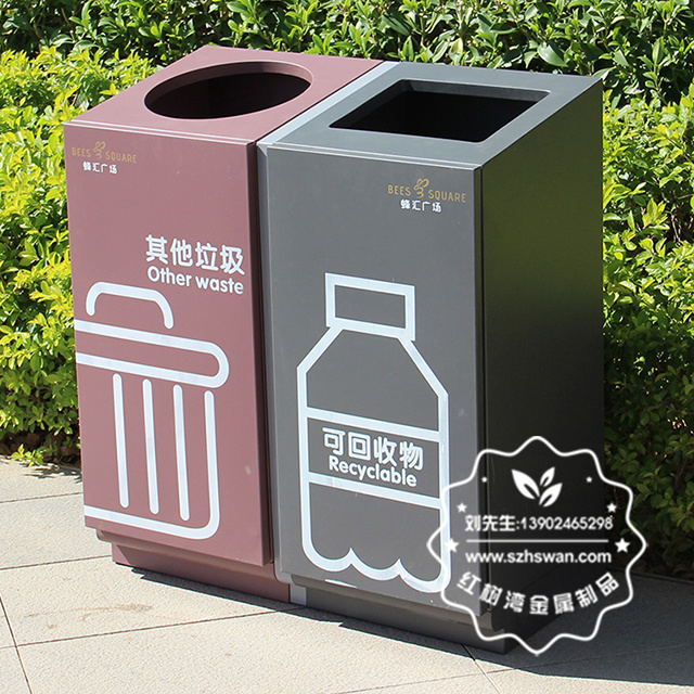 產品材質:商場直投口滑軌不銹鋼分類垃圾桶采用201#,202#,304#優質不銹鋼材料模壓成型,堅固耐用;內外表面光潔,減少垃圾殘留,易于清潔;配置鍍鋅板內桶,便于垃圾清倒;