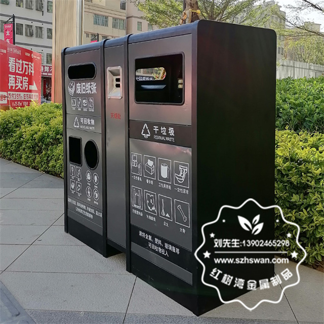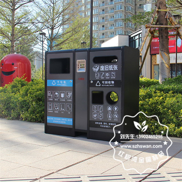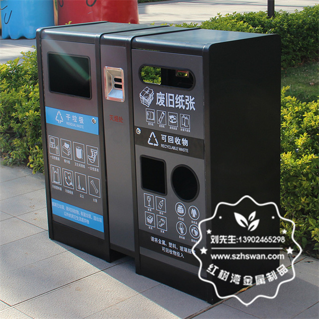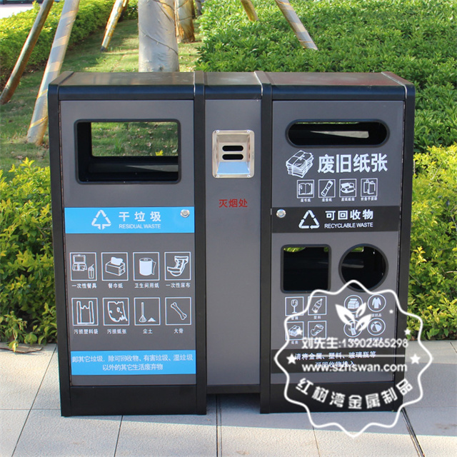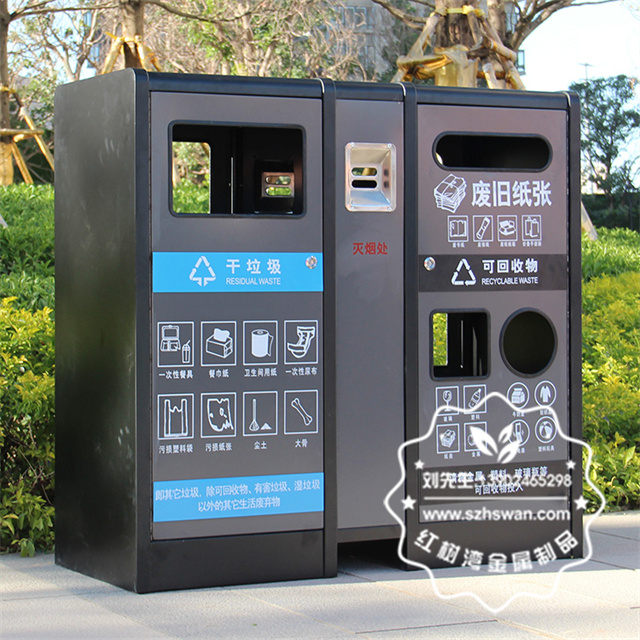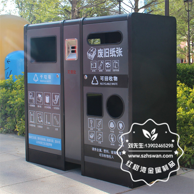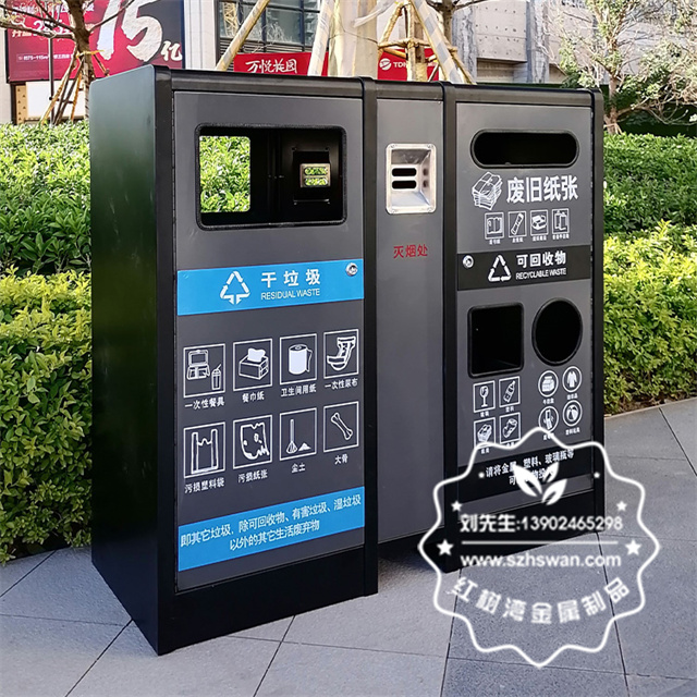 室內(nèi)戶外寫字樓不銹鋼分類果皮箱采用優(yōu)質(zhì)201不銹鋼無縫焊接成型,投口模具沖壓成型,邊角精細(xì)打磨拋光圓滑不割手,高檔大氣。
