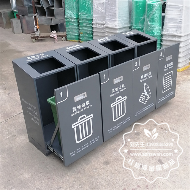 產(chǎn)品材質(zhì):室內(nèi)購物商場商用滑軌不銹鋼分類垃圾桶采用201#,202#,304#優(yōu)質(zhì)不銹鋼材料模壓成型,堅固耐用;內(nèi)外表面光潔,減少垃圾殘留,易于清潔;配置鍍鋅板內(nèi)桶,便于垃圾清倒;