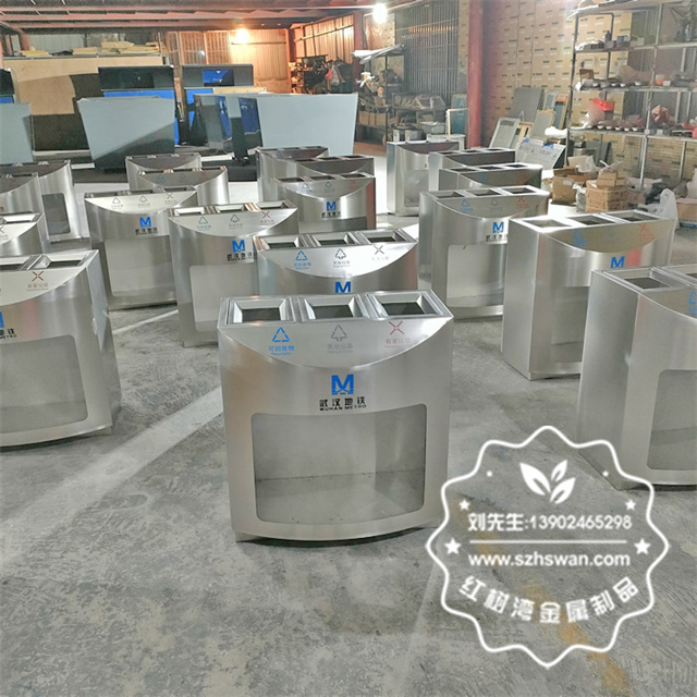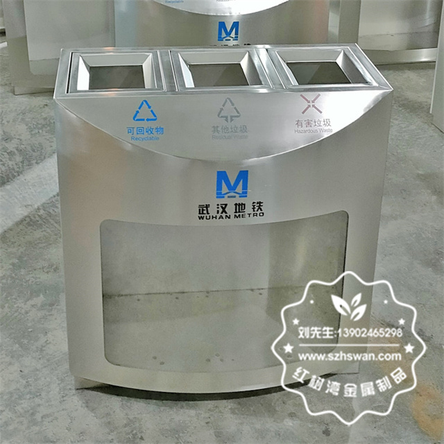 產(chǎn)品材質(zhì):湖北武漢地鐵站三分類不銹鋼垃圾桶采用201#,202#,304#優(yōu)質(zhì)不銹鋼材料模壓成型,堅(jiān)固耐用;內(nèi)外表面光潔,減少垃圾殘留,易于清潔;配置鍍鋅板內(nèi)桶,便于垃圾清倒;